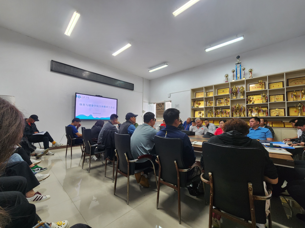 4月9日中午,体育与健康学院于彰善楼四楼会议室召开全体教职工会议,学院全体教职工参加了本次会议,本次会议由学院院长李善华主持。