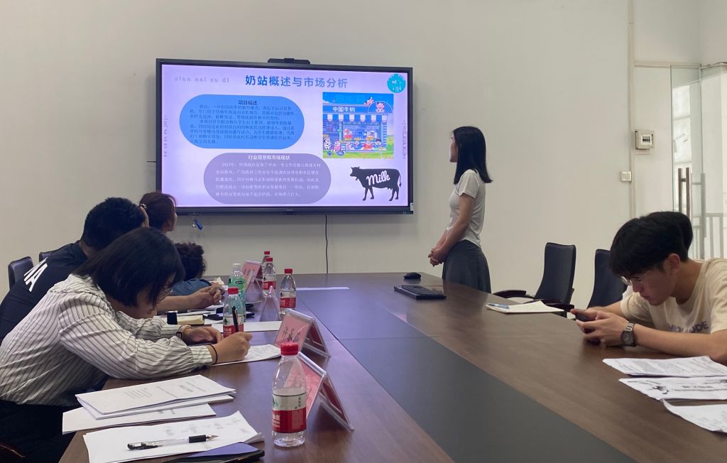 活动伊始,主持人介绍评分规则及路演顺序。随后,各团队依次就各项目简介、商业模式、主营业务、市场分析、盈利模式等进行介绍。评委老师一一评议打分,最终10支优秀团队脱颖而出,并将代表学院参加校赛。