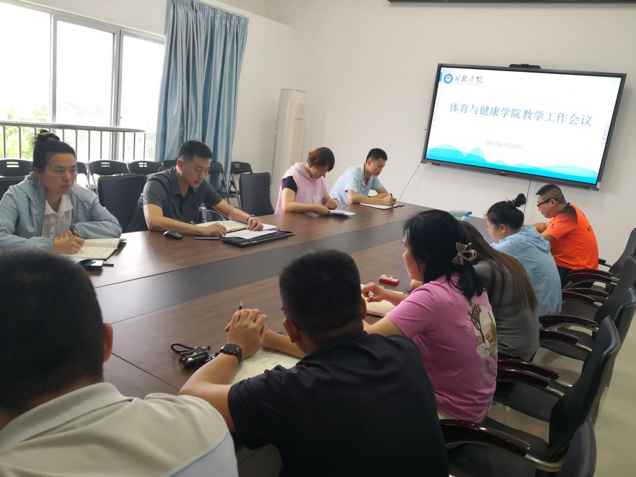 4月24日中午,体育与健康学院于彰善楼四楼会议室召开教研室主任(副主任)教学工作会议,学院各教研室主任(副主任)参加了本次会议,本次会议由学院副院长涂海宁主持。