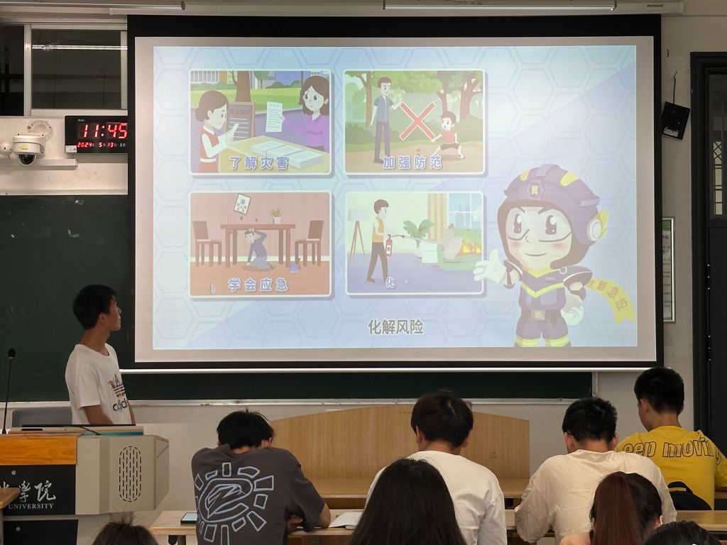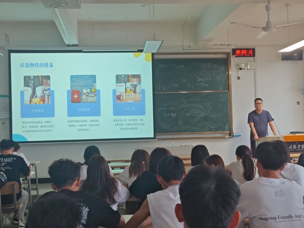 2024年5月12日,是我国第十六个全国防灾减灾日,主题是“人人讲安全,个个会应急”。在班会上,辅导员首先向同学们介绍了火灾、地震和洪水等常见灾害的自救与互救技巧。辅导员详细讲解了在火灾发生时如何正确使用灭火器、如何迅速逃离火场;在地震发生时如何寻找安全地带、如何保护自己避免受到伤害;在洪水来临时如何迅速转移到高处、如何利用救生器材等。此外,辅导员还强调了应急物资的准备,详细介绍了应急食品、应急药品和应急工具的种类和作用,提醒同学们要时刻保持应急食品的新鲜和充足,应急药品要备有基本的急救药品和常用药品,应急工具要备有一些基本的逃生工具和急救工具。