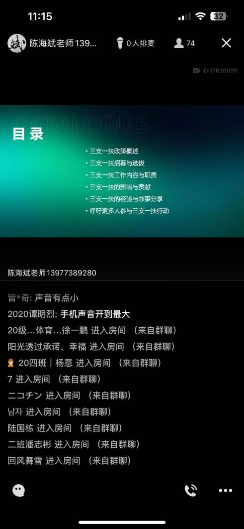 会上,陈海斌老师详细说明了“三支一扶”报名条件、岗位专业要求、选拔流程等内容,让同学们对“三支一扶”有了初步了解。随后,陈老师介绍了往届参与“三支一扶”的优秀校友现状,积极引导和鼓励同学们到基层工作。