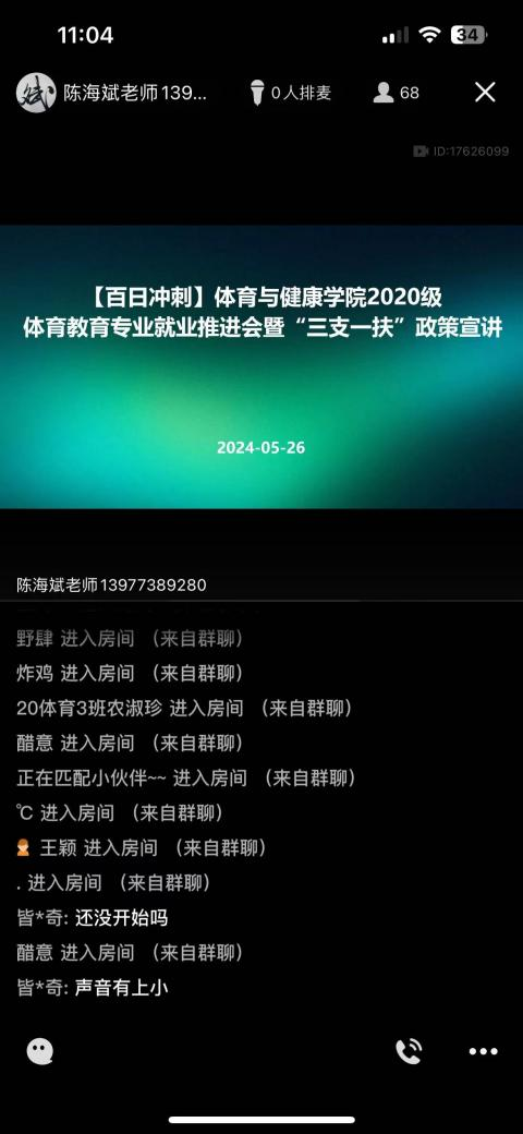 5月26日,体育与健康学院于线上开展了2024届毕业生就业推进会暨“三支一扶”政策宣讲会,本次会议由辅导员陈海斌老师主讲。