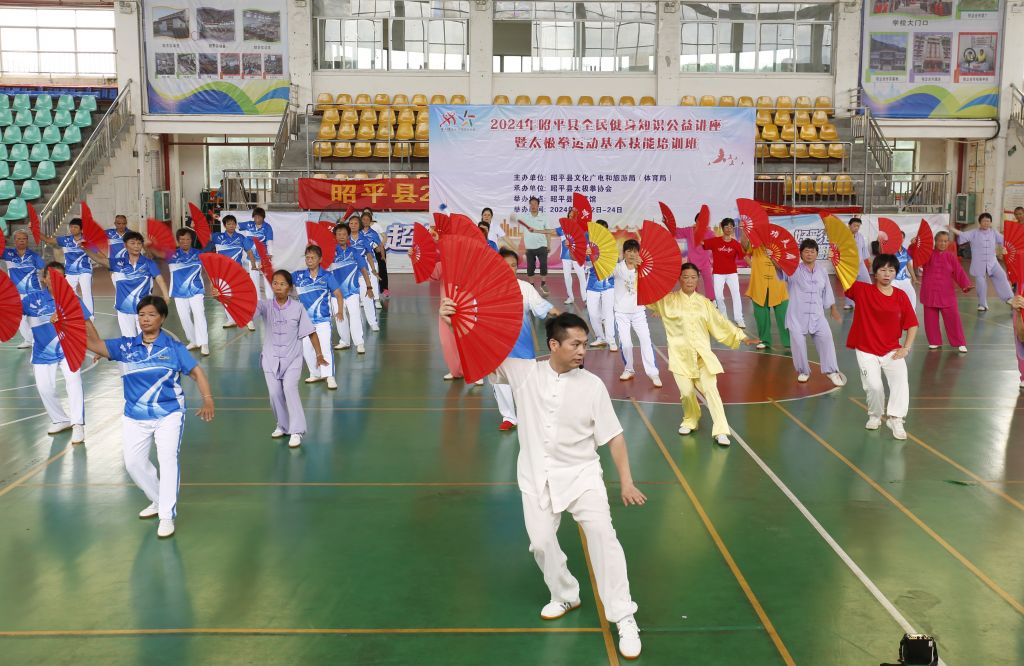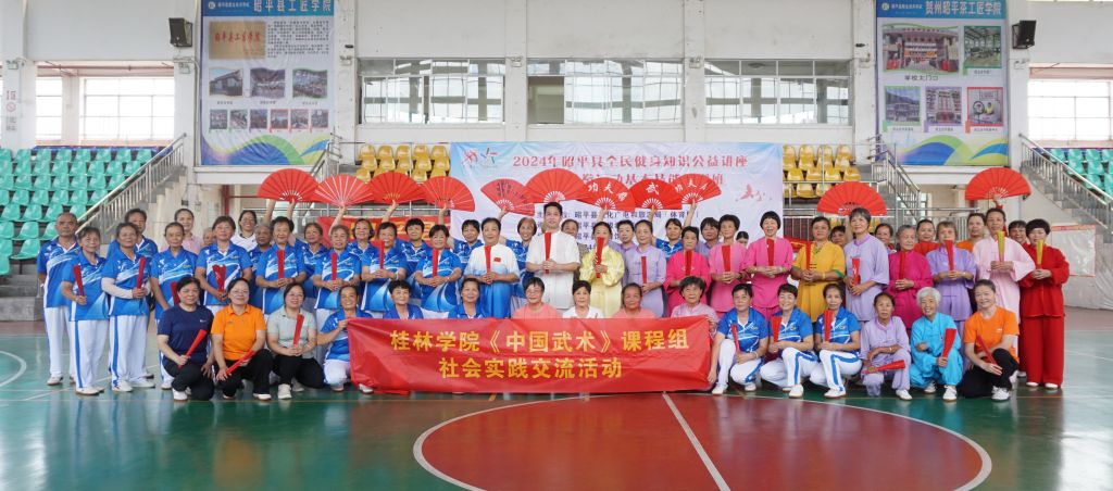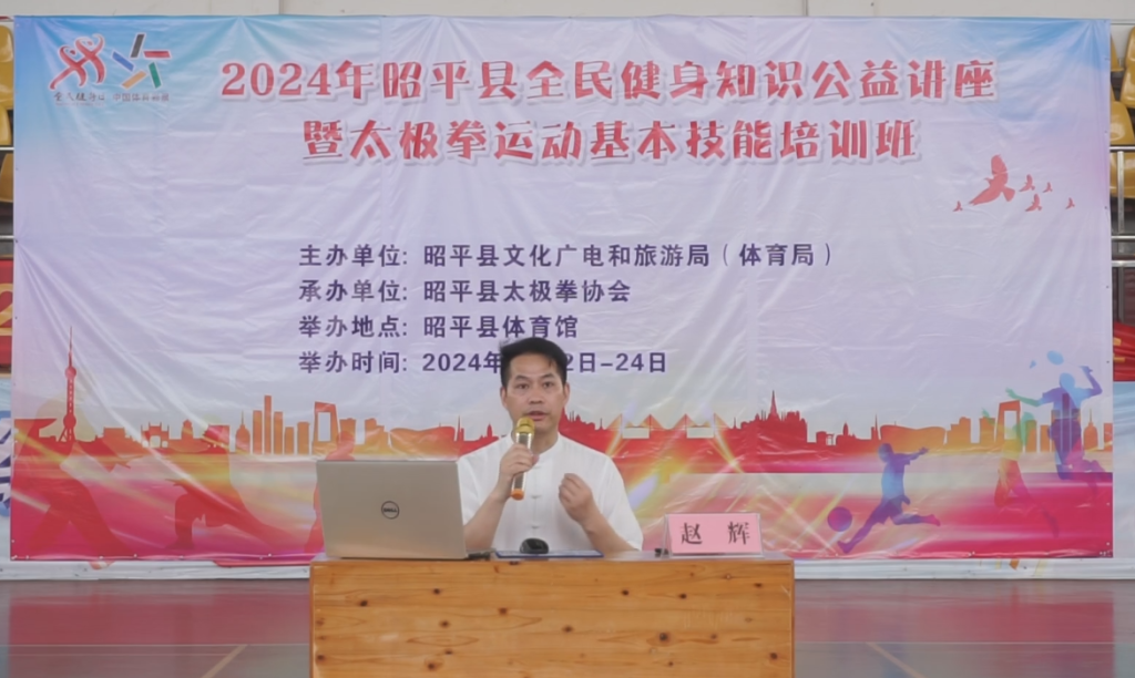 6月22日上午,由贺州市昭平县文化广电旅游局(体育局)主办,昭平县太极拳协会承办的2024年昭平县全民健身知识公益讲座在昭平县体育馆举行,体育与健康学院赵辉受邀参加,并做题为《太极人如何助力社会康养》的全民健身知识公益讲座,来自贺州市各个县(区),昭平县县直单位、各社会团体和社区的太极拳爱好者,共120人参加此讲座活动。