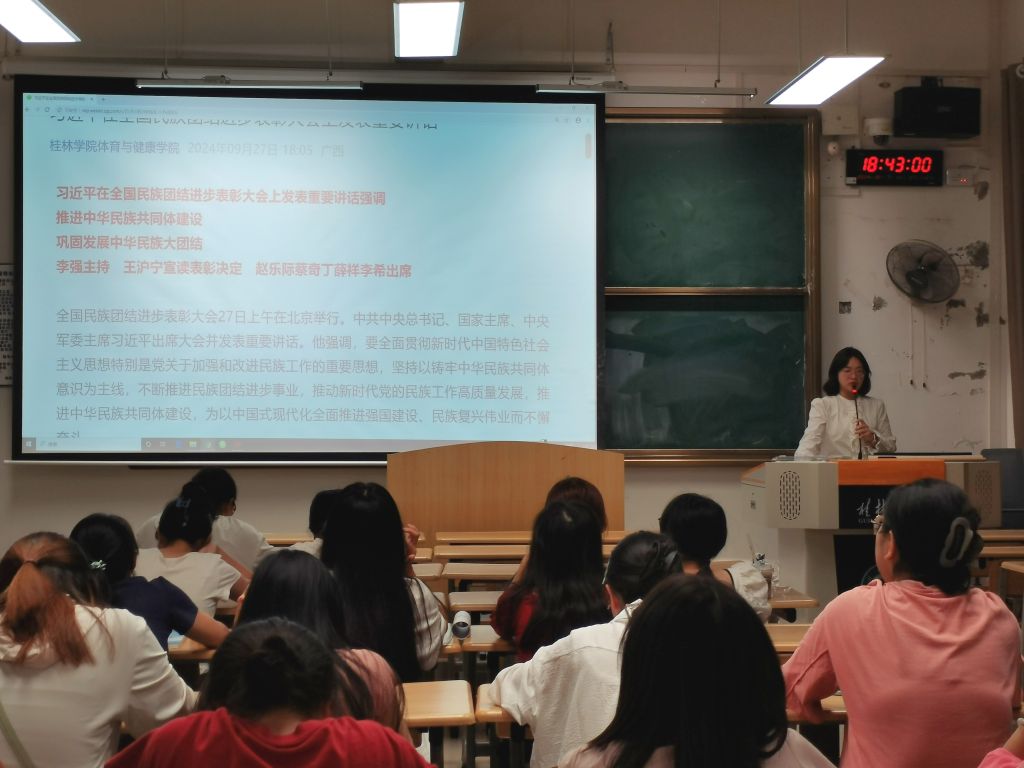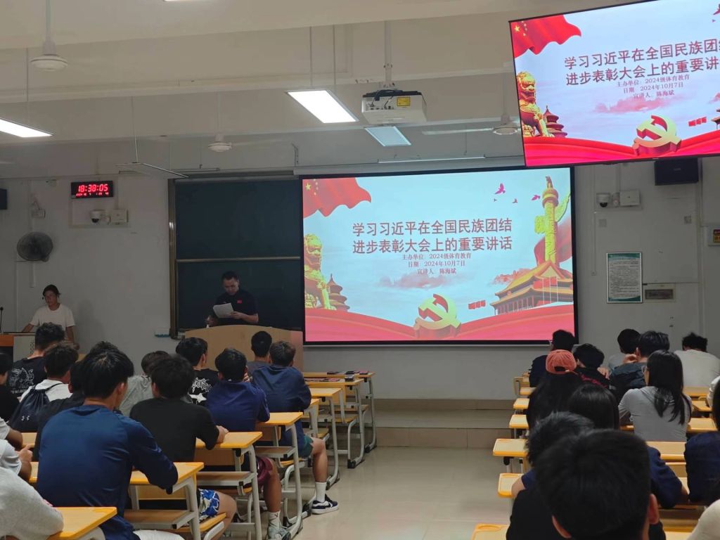 10月7日晚,体育与健康学院组织各年级辅导员于彰善楼开展“学习习近平总书记在全国民族团结进步表彰大会上的重要讲话”主题晚例会,主题例会由各专业辅导员主持,全体在校生参加了主题班会。