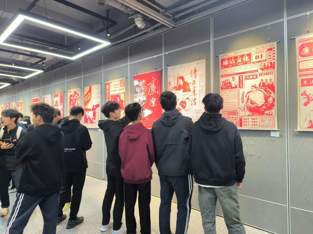 本次展览由校纪委、学生事务处(部)及城市设计学院共同举办,展出作品均为城市设计学院教师指导、学生创作,旨在通过艺术与设计的手法,深入挖掘并展现党史中的廉洁之光。展览涵盖了新中国成立75周年的辉煌历程以及清廉学校建设的丰硕成果,每一件作品都蕴含着丰富的历史内涵和廉洁文化。新生们在展厅内有序参观,认真聆听讲解,不时驻足欣赏,并相互交流心得体会。展览中,一幅幅生动鲜活的海报不仅展现了中国共产党领导下的新中国取得的伟大成就,还深刻展现了廉洁自律、风清气正的校园文化氛围。
