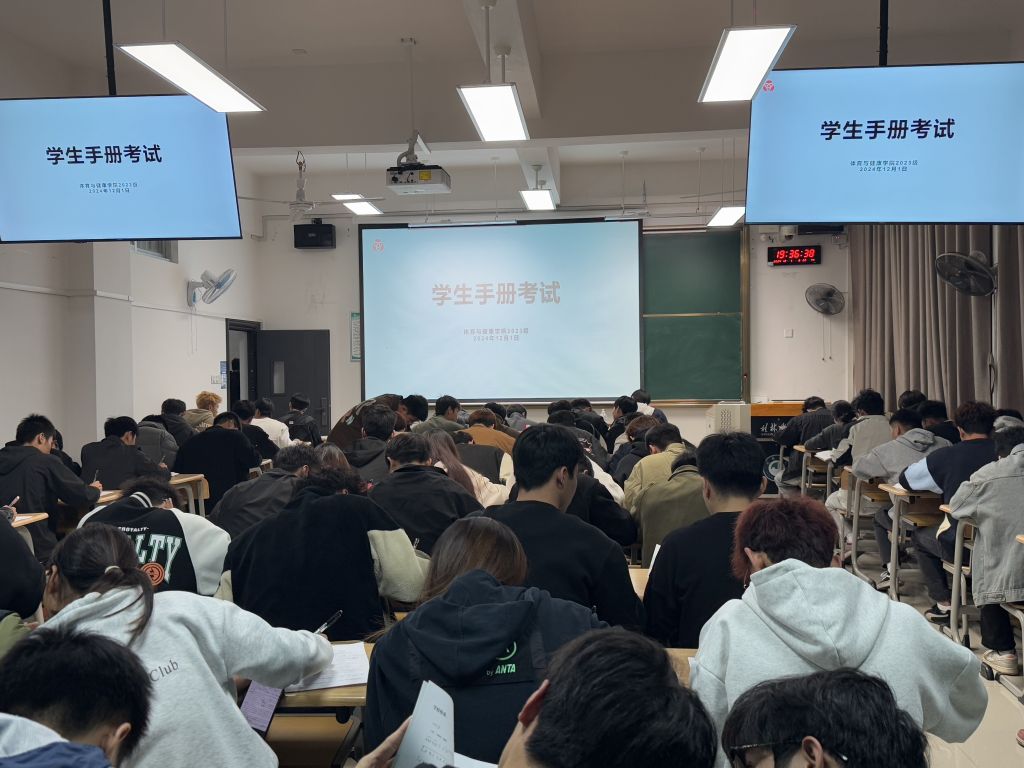 12月1日,体育与健康学院于至善楼开展《学生手册》考试,2023级和2024级全体学生参加了本次考试。