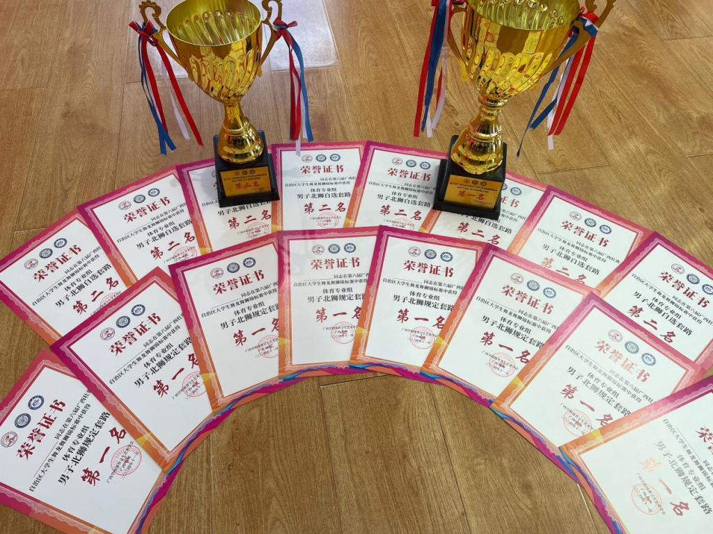 比赛共吸引来自全区21所高校教练员和运动员参加,我校龙狮代表队派出6名运动员参加体育专业组北狮两个单项角逐,经过激烈角逐,我校龙狮代表队获体育专业组北狮规定套路第一名、北狮自选第二名的好成绩。体育与健康学院尹晨旭老师获“优秀教练员”称号;2023级体育教育李启腾同学获“优秀运动员”称号。