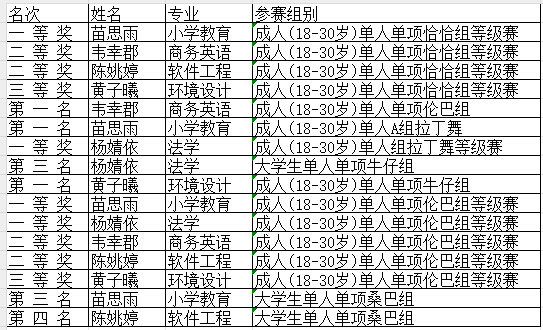 比赛共吸引了区内外114个参赛队、近1500名体育舞蹈精英参与,我校龙体育舞蹈代表队派出5名运动员参加比赛,经过激烈角逐,我校体育舞蹈代表队获单人赛第一名7项、二到四名9项的好成绩,具体获奖情况如下: