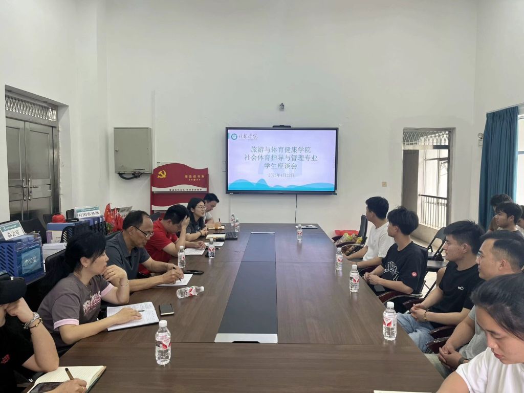 4月22日中午,旅游与体育健康学院在彰善楼四楼会议室召开了社会体育指导与管理专业师生座谈会。此次座谈会由学院党总支副书记主持,学院领导班子、全体辅导员、社会体育教研室教师代表以及社会体育指导与管理专业各年级学生代表共同参与此次交流。