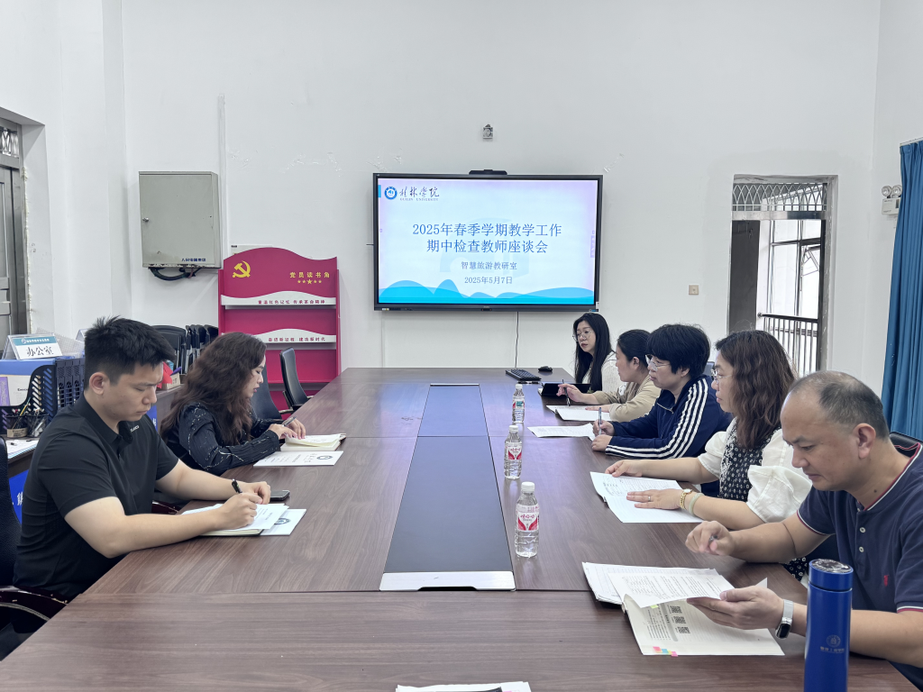 5月7日下午,智慧旅游教研室在彰善楼4楼会议室召开2025年春季学期期中教学质量检查教师座谈会。智慧旅游管理教研室全体教师参会,会议由智慧旅游教研室主任主持。