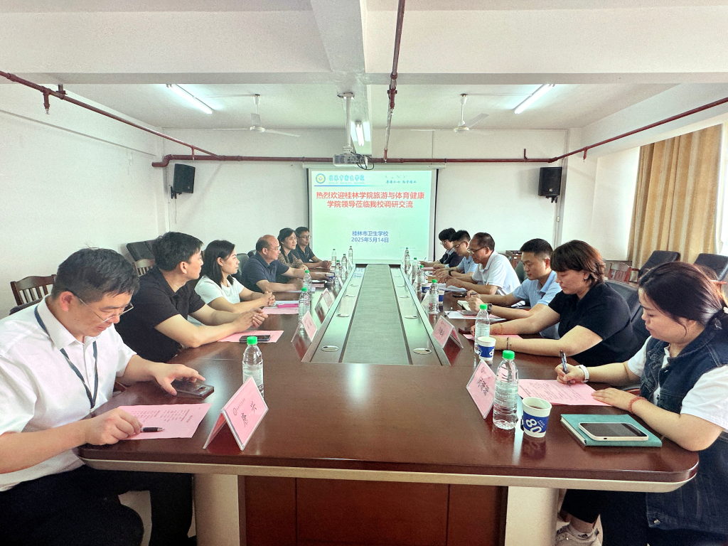 5月14日,桂林学院旅游与体育健康学院院长带队赴桂林市卫生学校开展校际合作交流。双方围绕“运动康复”“康养旅结合”等领域展开深度研讨,在专业共建、资源共享、人才共育等方面达成多项合作共识。桂林市卫生学校校长蒋文荣、副校长邓芝伶及相关部门负责人,旅游与体育健康学院副院长,教研室主任邱晓玲及教师代表石丽璠、闵珊珊、秦子涵共同参与座谈。