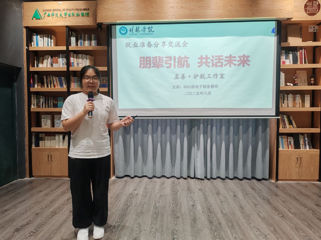 图:蔡欢同学以“朋辈引航,共话未来”为主题进行分享交流