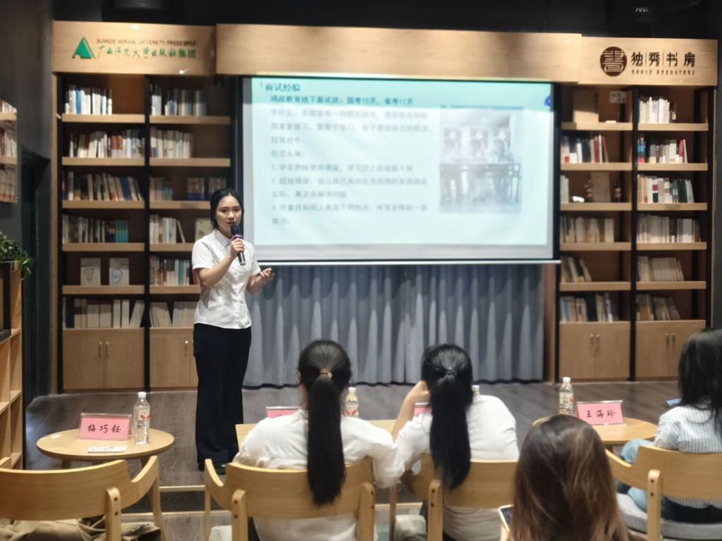 图:梅巧钰同学以“从国考到省考:笔试与面试全程攻略”为主题进行分享交流