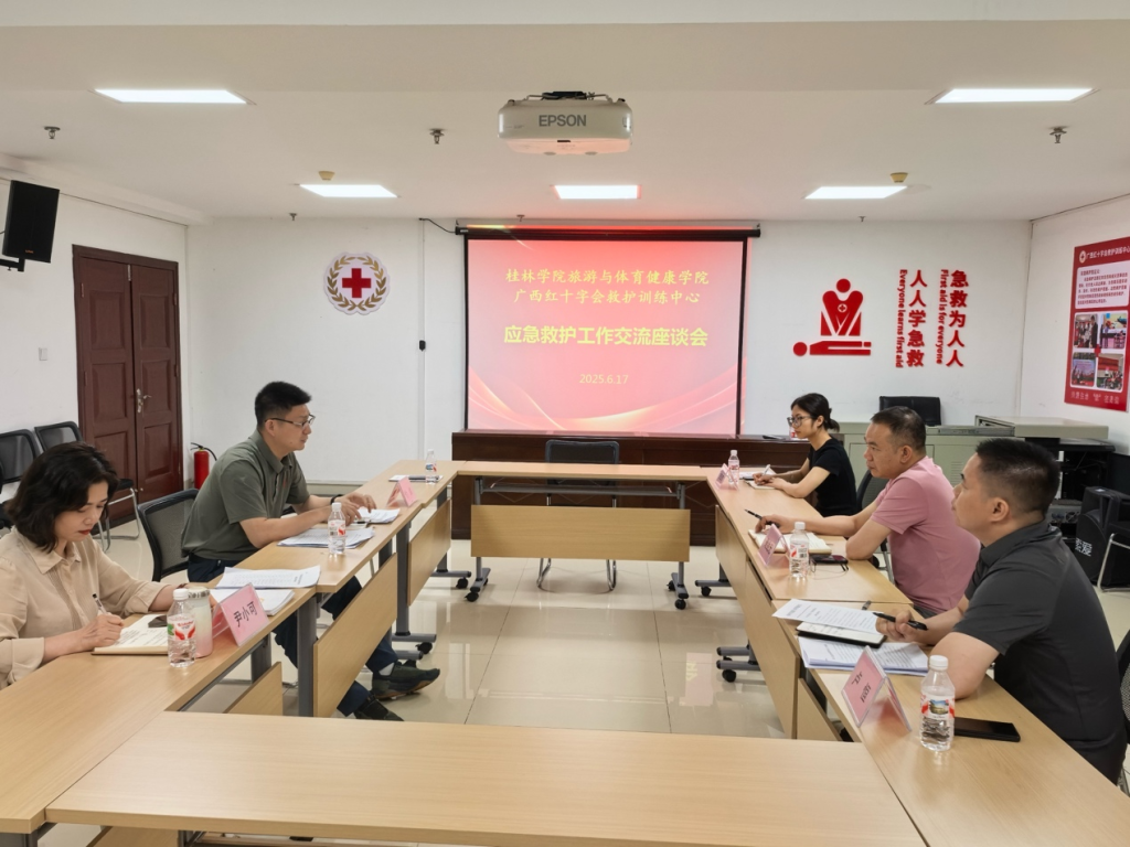 广西红十字救护训练中心领导高度认同副院长的提议,并表示红十字会在应急救护培训领域拥有丰富的标准化经验与强大的师资网络,非常期待与桂林学院强强联合。双方一致认为,通过整合学院在体育健康领域的学科优势与红十字会在应急救护实践方面的专业力量,共同建设集“教学实训、技能考核、科学研究、社会服务与科普推广”于一体的综合性基地,能够为培养具备应急救护技能的复合型体育健康人才、提升公众自救互救能力、服务社会民生提供坚实支撑。