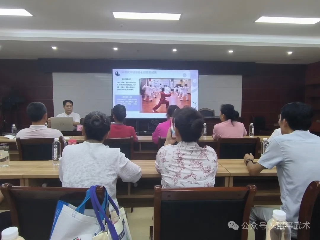 7月11日晚,旅游与体育健康学院教师赵辉应贺州市昭平县体育局邀请,于昭平县政务中心作主题为“守中与入微——沉浸式体验在太极拳哲学传承中的认知重构”的讲座,此次讲座吸引了当地众多太极拳爱好者及文化学者的热情参与。