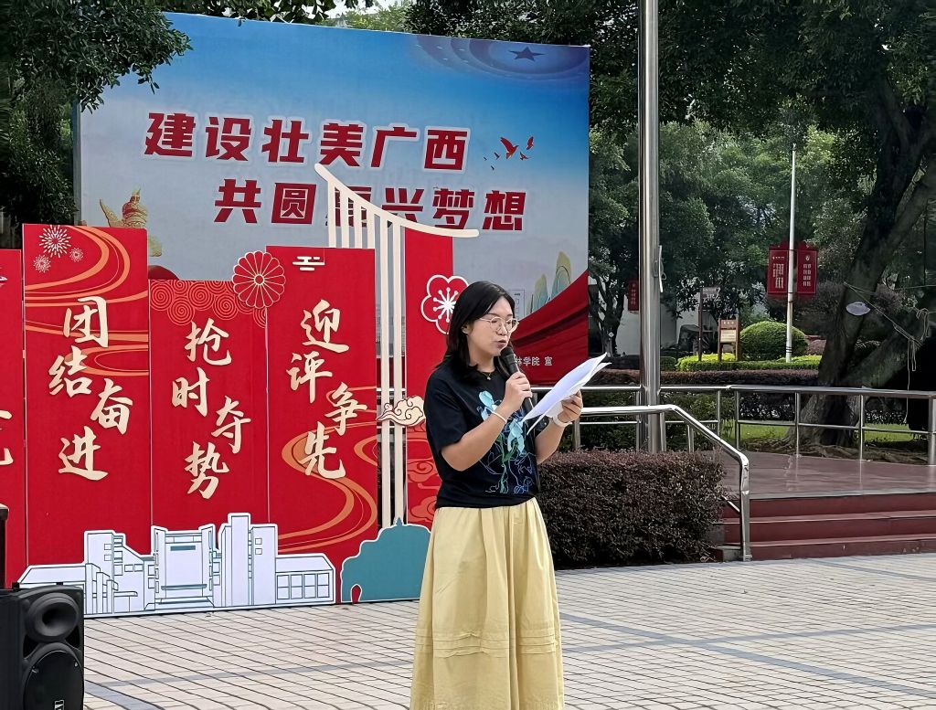 仪式在雄壮的国歌声中拉开帷幕。党总支副书记以《赓续抗战精神,勇担强国使命》为题作国旗下讲话,回顾中国人民抗日战争暨世界反法西斯战争胜利80周年的光辉历程,深刻阐释抗战精神“天下兴亡、匹夫有责的爱国情怀,视死如归、宁死不屈的民族气节,不畏强暴、血战到底的英雄气概,百折不挠、坚忍不拔的必胜信念”的核心内涵,并对全体学生提出三点要求:一是将爱国情怀转化为勤学苦练的具体行动,在攻克专业难题与服务社会中实现青春价值;二是将坚韧品格融入日常学习生活,以迎难而上、永不言弃的态度完成学业任务;三是将团结精神落实到宿舍、班级、志愿服务等集体场景,汇聚同心奋进的青春力量。