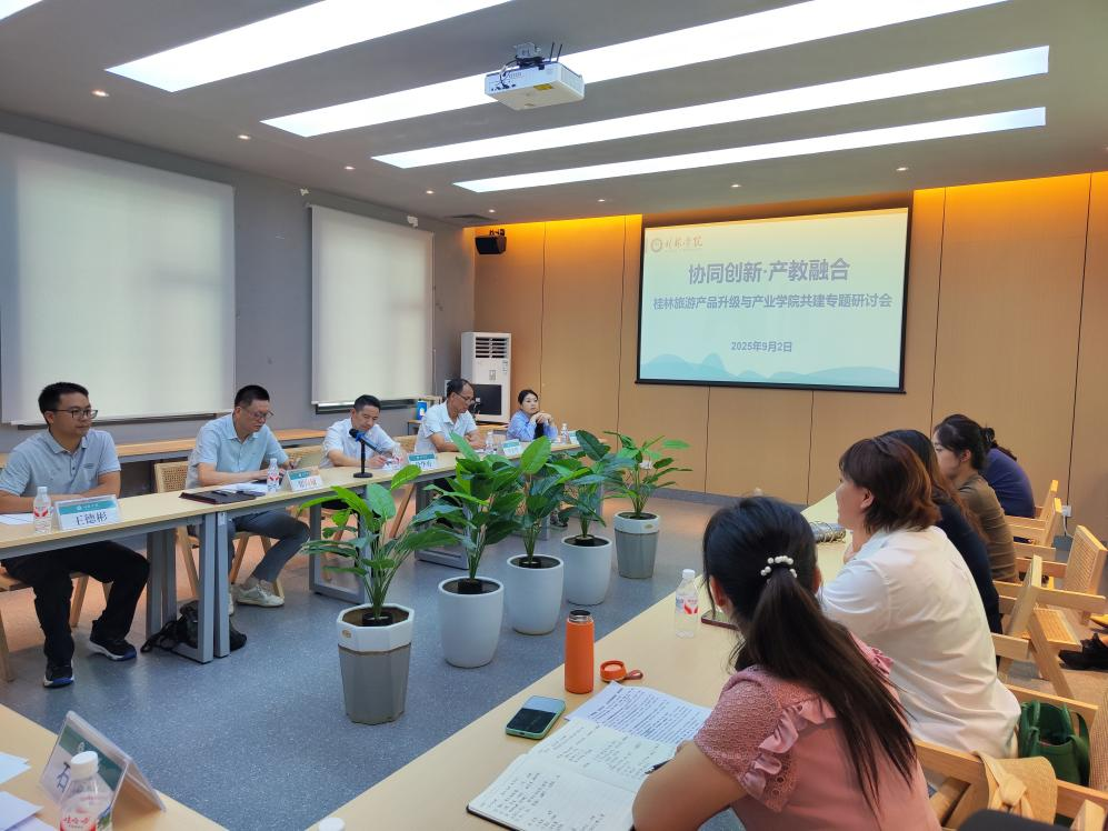 9月2日下午,学校在一站式学生社区辅导员工作室举办“协同创新·产教融合:桂林旅游产品升级与产业学院共建专题研讨会”,会议特邀华侨大学郑向敏教授、桂林旅游投资集团有限公司文旅内容(IP)研发中心总经理段华勇等业界专家,旅游与体育健康学院、教育与音乐学院、城市设计学院教师代表,科研与社会合作处代表共同参加本次研讨会。