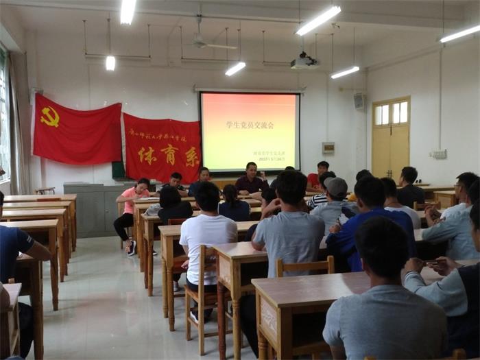2017年5月24日中午,体育系学生党支部在广西师范大学体育学院102教室开展了在校党员与第十七期入党积极分子培训班学员的交流会,会议由体育系学生党支部负责人梁月玲主持,支部书记陈海斌老师主讲。