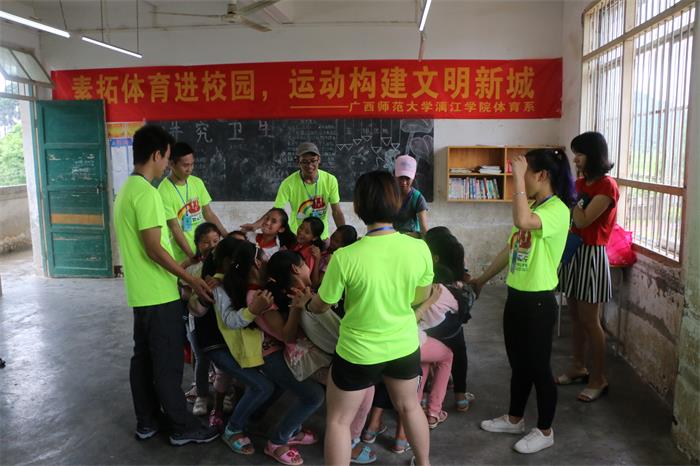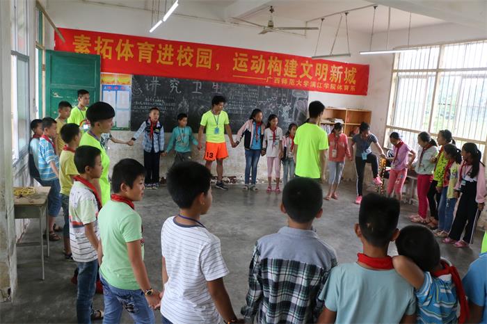为了使学生养成良好的锻炼习惯,逐渐培养学生的锻炼意识,进一步丰富体育教学资源,增强小学体育教学内容的时代感和先进性。更好的让素拓体育走进中小学校园,激发学生兴趣和热情。我系团学与经济政法系于6月6号前往桂林临桂区马面小学开展“学法,构建法制社会;运动,创建文明新城”活动。