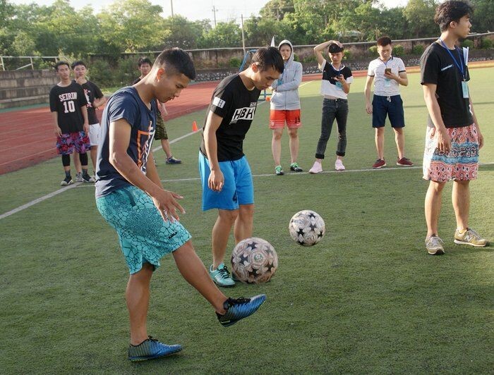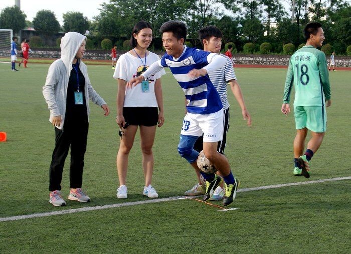 参与本次趣味足球的队伍分别由13支队专业队和7支普通队伍队组成,每支队伍5名队员。比赛分为:垫球、定点射门、踢球绕杆、足球保龄球、夹球袋鼠跳五个项目,每项任务完成后由击掌衔接下一项。活动在激烈而又愉快的笑声中进行,通过团队的努力,最后,由经济政法系和16级体育教育2班获得了非专业组和专业组第一名的好成绩。