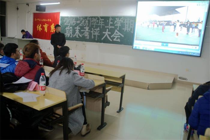 12月16日晚七点半,我系于1214教室举行“2016-2017学年第一学期团总支期末考评大会”。体育系党总支书记刘波、团总支书记陈海斌、院组织部代表以及各系组织部代表参加了本次考评大会。