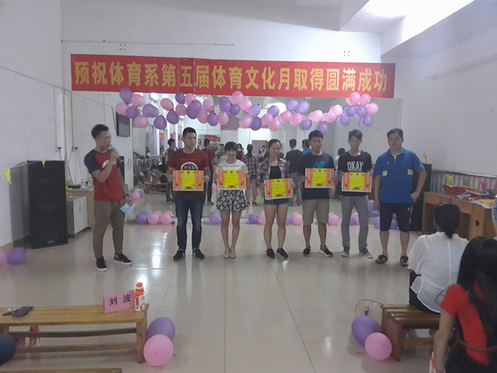 凝聚力量展体育文化,光影辉映秀青春风采。6月19日晚,我系体育馆健美操教室热闹非凡,由体育系团总支学生会主办的第五届文化月闭幕式暨颁奖晚会隆重举行。系党总支书记刘波、团总支书记雷冬红、经济政法系老师陈维维、体育系老师潘春丽、陈权、韩磊以及各系代表出席了本次闭幕式晚会。