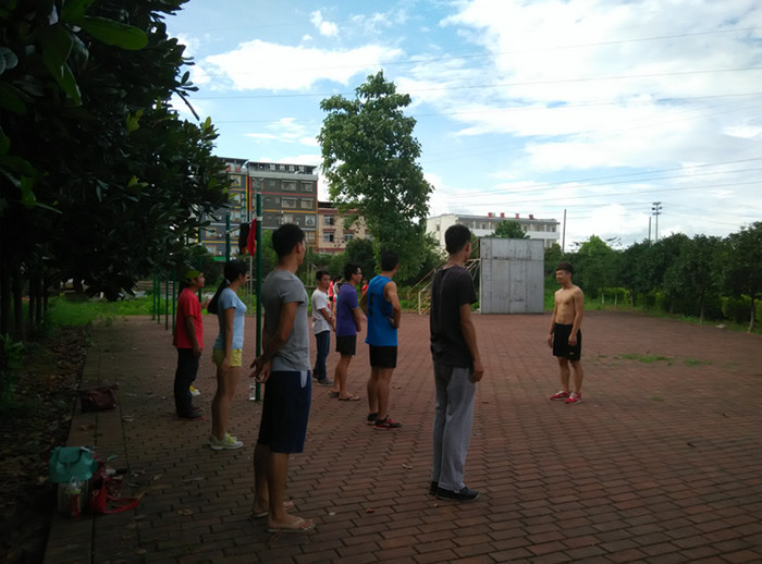 骄阳似火,烈日炎炎,伴着嘹亮的口号声,体育系2012级体育教育的同学们正在户外操场练习队列队形、广播体操。全年级113名同学分成5个小组,由组长带领他们利用课后时间练习,为下学期的教育实习做好充分准备。