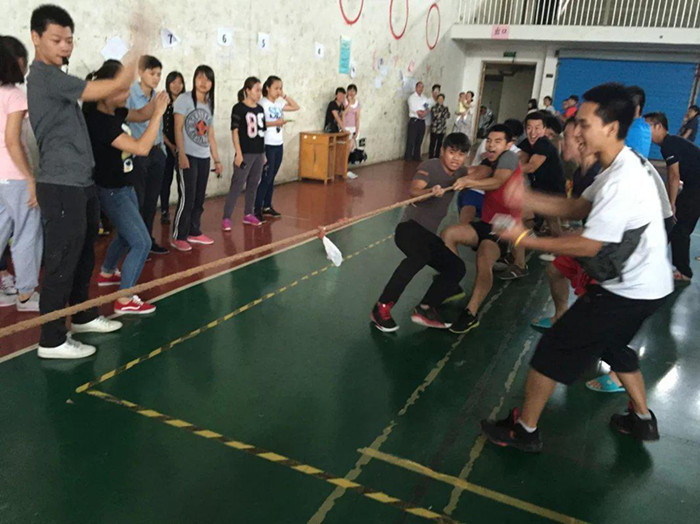 伴随着声声充满阳刚之气的呐喊,我系文化活动月系列活动--班级拔河比赛在体育馆顺利进行。参加拔河比赛的队伍分别为我系的每个班级代表,以班级为单位参赛。比赛中大家都非常积极,呐喊声加油声充满整个体育馆,整齐的口号,充满激情的比赛引得许多人来围观。