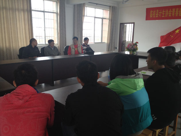 临桂三中王主任(左一)粟主任(左二)与检查组及实习学生进行交流