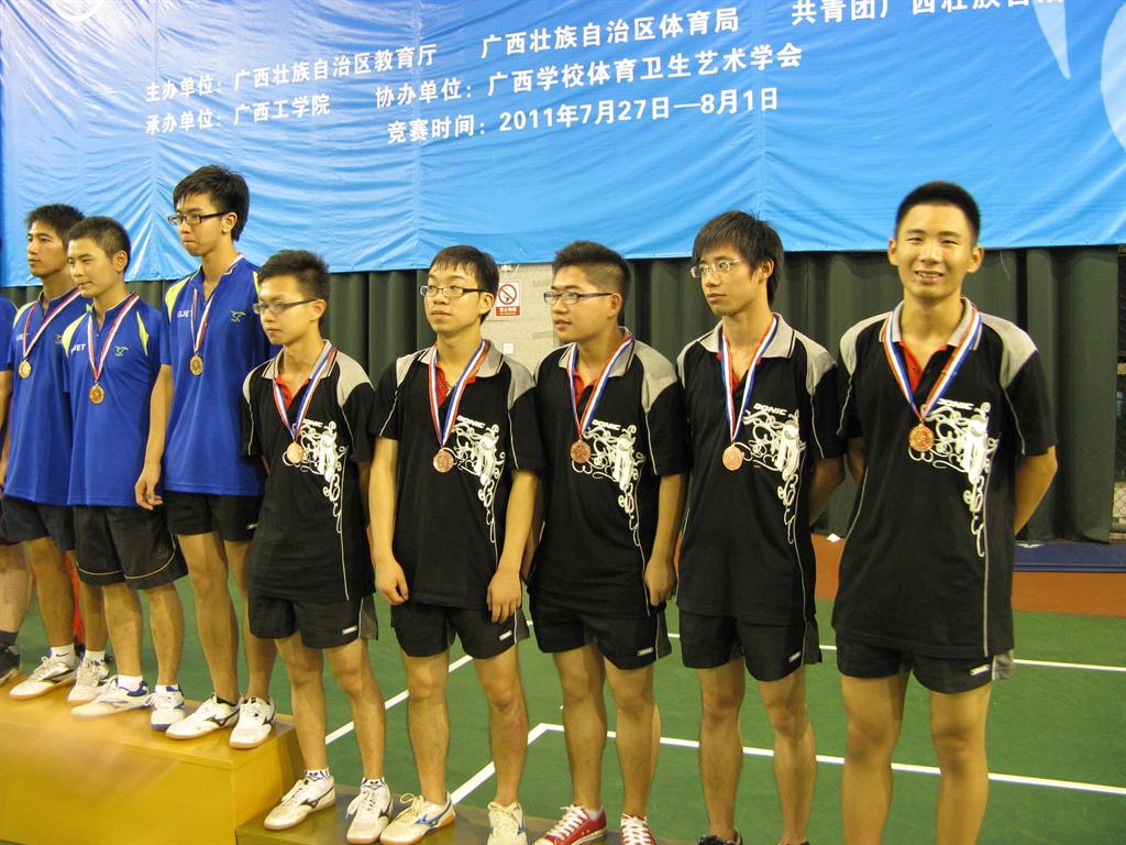 漓江学院乒乓球代表队在广西第七届大学生运动会乒乓球比赛中获男子团体铜牌(中)