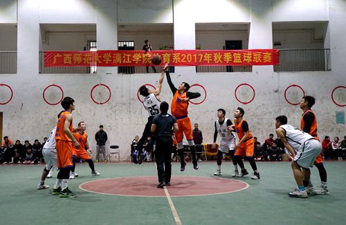 为了促进各年级的交流,增进同学们之间的友谊,2017年12月4日-12日,由体育系学生会体育部主办的秋季篮球赛在学生活动中心篮球场举行。比赛共20个赛队,分循环赛、淘汰赛、半决赛、决赛。开幕式由中国广西中华堂龙狮体育会精彩表演拉开序幕,比赛历时九天激烈角逐。