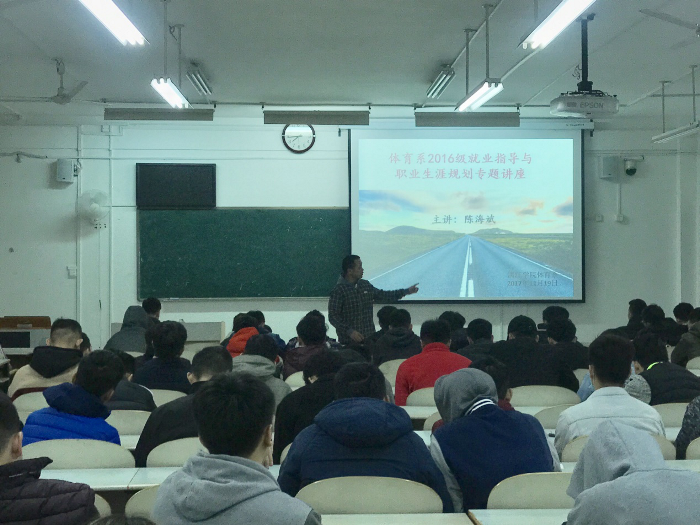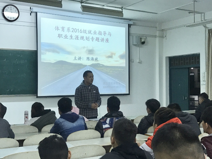 为进一步加强学生的职业素养、规划好大学生涯。我系于2017年11月19日晚在师大文一区508教室召开关《就业指导与职业生涯规划专题讲座》,由陈海斌老师主讲。
