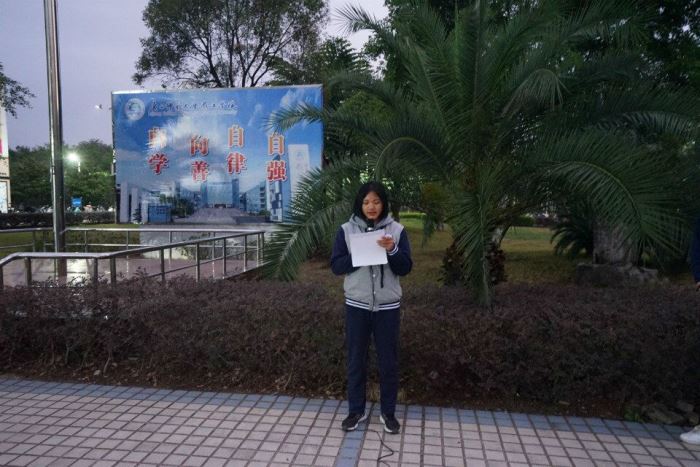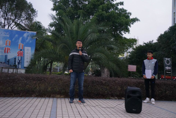 仪式之后,由2017级新生蒙国庆同学发表了《防范传销》的演讲,他给同学们介绍了传销的危害,以及防范的措施。之后由系辅导员李炎老师为全体师生做了致辞,并指出四六级考试即将到来,请同学们在求学之路上要明确自己的奋斗目标、把握机遇、珍惜时间、勤奋好学,在学习和生活中,以实际行动展示爱漓江学院的形象,以优异成绩建设美好的校园,为开创我们漓江学院学子新的辉煌而努力奋斗!