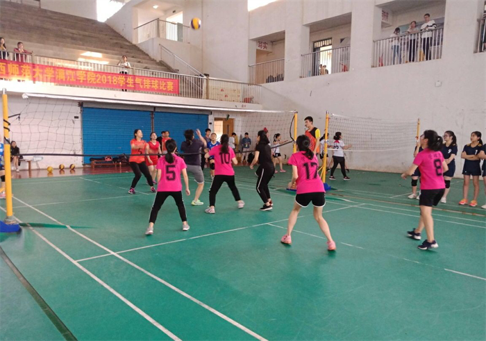 昨日,为期五天的“广西师范大学漓江学院2018年度气排球比赛”已经圆满结束。本届气排球赛在室内气排球场举行,时间为2018年4月23日至4月27日。气排球赛的参赛队伍由各系队组成,分为专业组和非专业组,比赛分为两个阶段进行:第一阶段分两个小组进行单循环比赛;第二阶段由两小组前二名采取交叉赛,胜者之间决一二名,负者之间决出三四名。本次气排球赛主要为了丰富同学们的课余生活,展示同学们的体育才华,激发广大学生对校园及体育的热情,增进同学之间的交流,增加团队凝聚力,展示出新时代大学生的蓬勃朝气和竞技热情。在过去的一周中各参赛队之间展开了激烈的角逐为观众呈现了一场场精彩纷呈的比赛。最后获奖情况为:男子组专业组第一名体育系,非专业组第一名经政系 、第二名管理系、第三名外语;女子组专业组第一名体育系,非专业组第一名管理、第二名中文系、第三名外语系。比赛取得圆满成功在此要感谢各参赛队队员及相关工作人员的辛勤付出,同时也感谢那些到场积极参与观看、呐喊助威的同学们对比赛的支持。