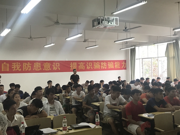 本次活动主要以授课的形式进行,通过专业的银行工作人员为同学们介绍了电信网络诈骗的定义,并用以案学法的方式,引用发生在群众身边的冒充领导诈骗,冒充公、检、法人员诈骗,中奖诈骗,冒充教师诈骗等十个鲜活的案例进行详细地讲解,让同学们深刻了解到了电信网络诈骗的危害以及日后该如何预防电信网络诈骗的举措,进一步提升了同学们预防诈骗的能力。活动尾声,工作人员以现场抢答的形式向在场的同学们提了一些如何防诈骗的小问题,大家纷纷踊跃回答,现场气氛十分活跃。