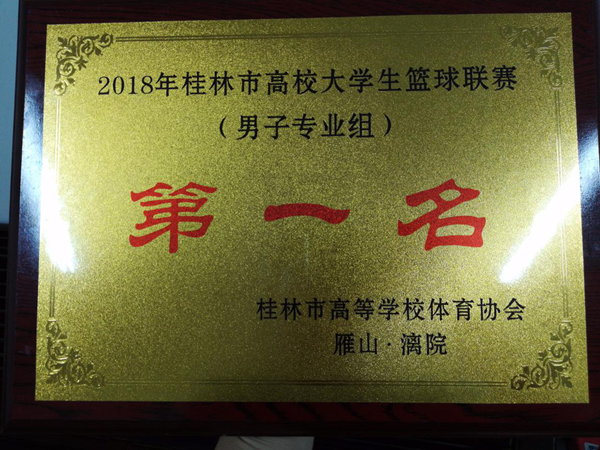 由桂林市高校体育协会主办,我校承办的2018年桂林市大学生篮球联赛5月26日落下帷幕。来自桂林市10支参赛高校、17支男女队伍、进行了47场激烈比赛,我校男篮最后一场迎战广西师范大学男篮,最终以70:44的比分战胜上届冠军队广西师范大学队,斩获本届联赛男子专业组冠军。女篮惜败广西师范大学女篮获得女子专业组亚军。