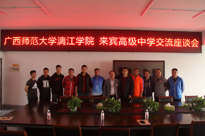 为进一步深化教育教学改革,创新人才培养模式,探索以提升质量为核心的体育教育专业人才培养内涵式发展之路,2018年3月23日至24日,由体育系直属党支部书记付健、副主任涂海宁带队、球类教研室主任陈俊吉等专任教师一行七人赴来宾高级中学开展体育师范生专业调研,来宾高级中学校长陆铭中、副校长梁建欢对我系教师一行表示热烈欢迎。