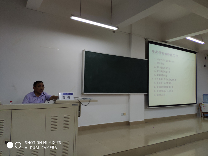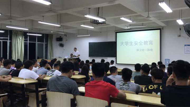 讲座开始,孙俊处长从防火、防盗、防骗、防人身伤害四个方面,通过列举高校真实案例、播放典型案例视频等方式,指出了大学生应注意宿舍用电安全,特别是宿舍内使用大功率电器的危害;在校大学生防盗意识淡薄,容易轻信他人,导致钱财损失,人身安全遭到威胁的现状。同时,他还向新生们简单介绍了窃贼偷盗的惯用伎俩,希望新生们注意宿舍防盗,时刻保持警惕,不轻易同意陌生人随意进出房间。最后孙俊处长希望新生们能够用实际行动,真正做到遵纪守法,成为一名文明、健康、有为、诚信的大学生。