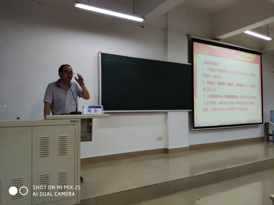 为加强2018级新生对中国共产党基本理论知识的了解,激发同学们爱党之情,提高同学们入党积极性,本着早发现、早教育、早培养的原则。9月20日晚,体育系在公共教学楼1314教室开展了新生第一堂党课——入党启蒙专题讲座。讲座邀请到我校社会科学基础部周杰主任主讲。