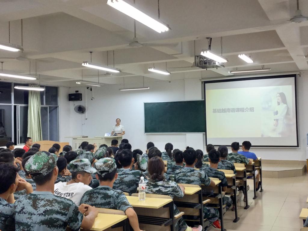 讲座首先由外语系越南语教师梁姗姗老师给同学们介绍大学外语的学习以及选课,让同学们了解到大学外语除了大学英语外还可以选修越南语,梁老师介绍由于越南语是零基础开始学习,学习起来更容易,希望大家之后能认真考虑再选课。
