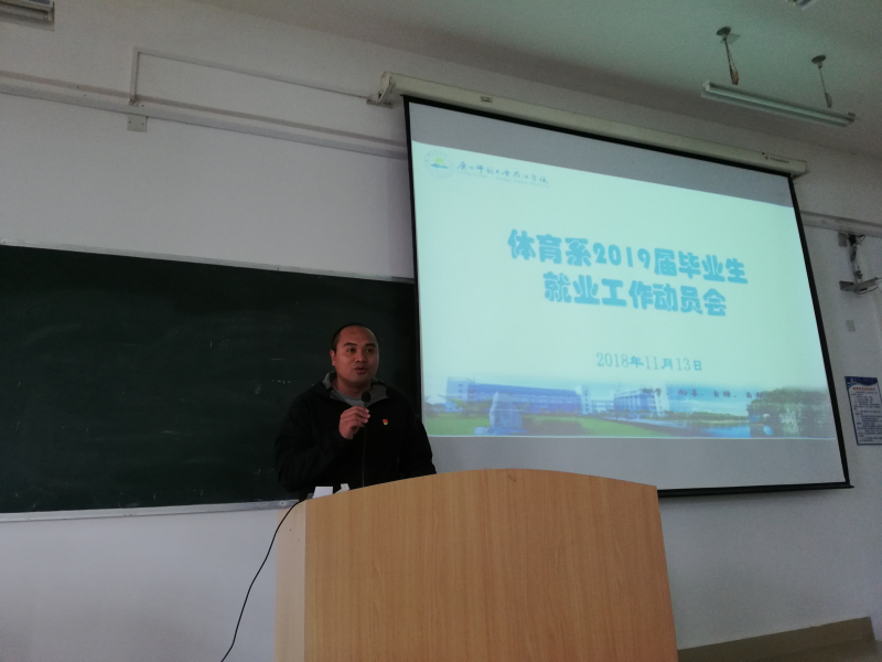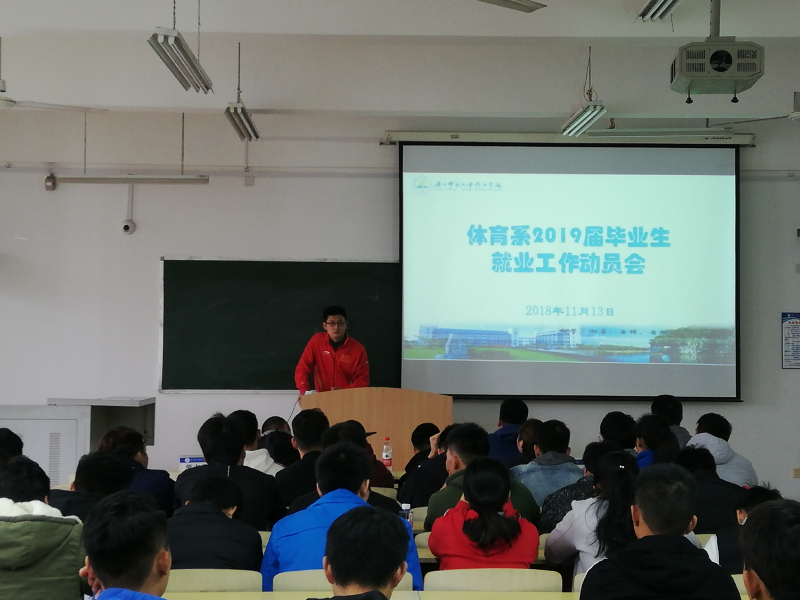 为引导体育系2019届毕业生更加清晰地了解就业形势,增强毕业生就业的紧迫感,推动我系2019届毕业生就业创业工作的开展,11月13日上午体育系在1414教室举行了2019届毕业生就业工作动员会,学生事务部副部长汤靖、体育系直属党支部书记付健、副书记熊志灵、体育系团总支书记陈海斌、副书记李炎及全体2015级体育教育专业100余名毕业生参加了动员会,会议由直属党支部副书记熊志灵主持。