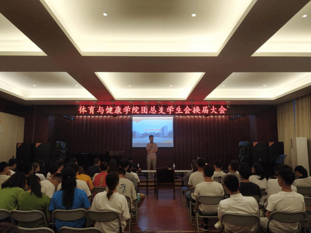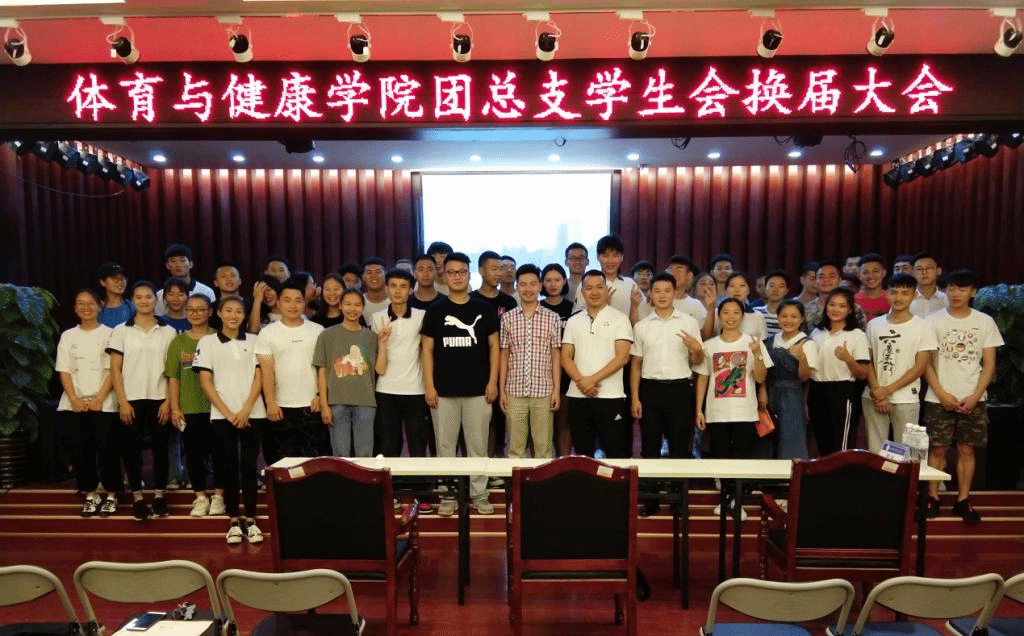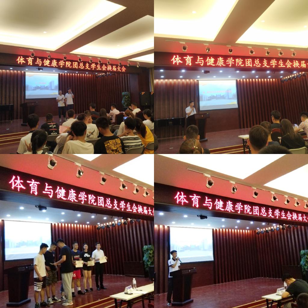 2019年6月17日晚,体育与健康学院团总支、学生会期末总结暨换届大会在嘉善楼二楼音乐厅隆重举行,体育与健康学院团总支全体学生干部、体育与健康学院党总支副书记郭时骏老师、团总支书记陈海斌老师、副书记李炎老师出席。