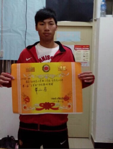 主要事迹:最近他参加广西师范大学漓江学院第三届体育系秋季联赛,带领本班荣获第三名的好成绩,还参加了广西第四届大学生艺术展演获得第三名的佳绩。