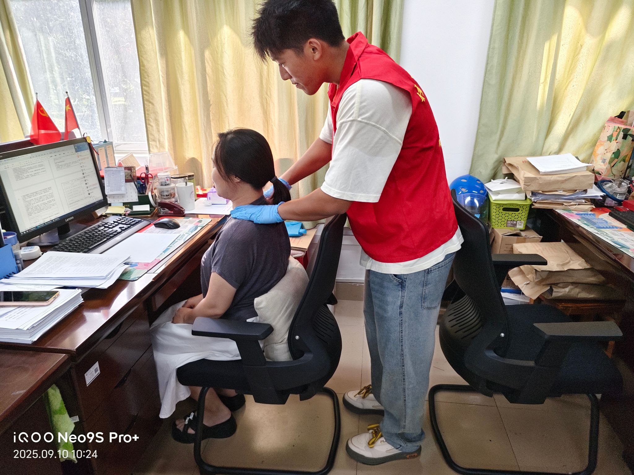 健康义诊送关怀。学生们组建了专业的志愿服务队,主动“送服务上门”,前往各教研室和教职工办公室,为老师们提供康复理疗服务和个性化的健康咨询。他们运用课堂所学的运动康复与健康管理知识,耐心解答老师们关于常见职业病的预防和保健问题,将健康的关怀直接送到老师的办公桌前,受到了老师们的热烈欢迎。