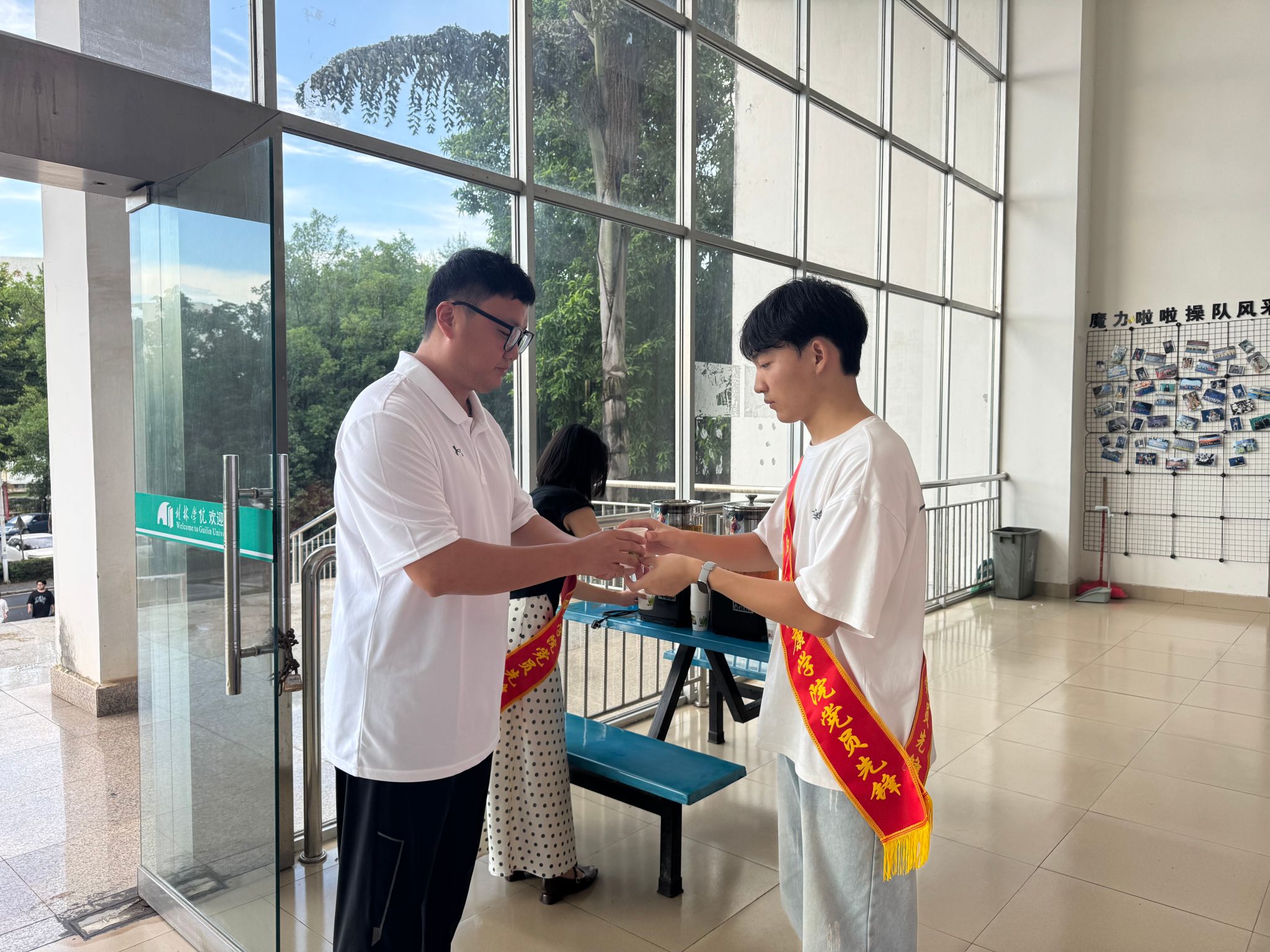 图:学生在彰善楼设置“感恩茶歇点”