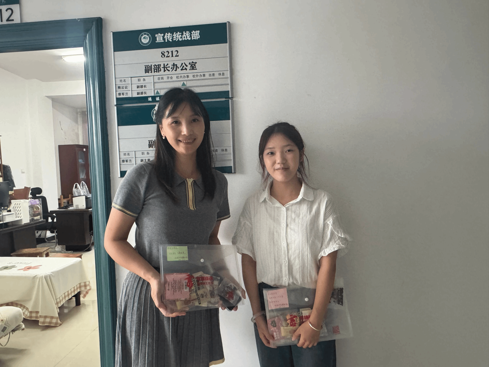图:学生为教师赠送亲手制作的艾草薄荷膏等健康产品