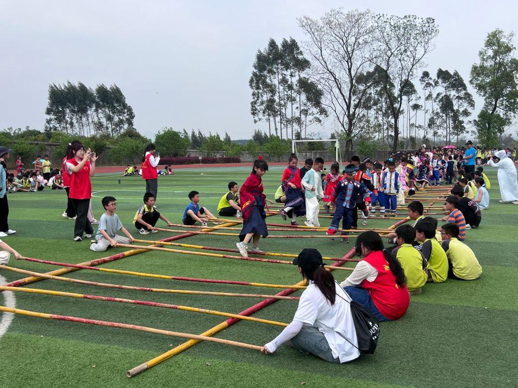 在猴山社区连心广场,学院师生连同象山区平山街道猴山社区党委共同开展了“传承民族文化,共享运动活力”主题 游园活动,舞狮表演和功夫扇展示拉开活动序幕,活动现场设置了背篓绣球、花毽、蹴球、投壶等 10 个民族传统体育项目,吸引了猴山社区300余名居民的参与。在桂林市第二技工学校和桂林三合中心校,由桂林学院师生组织和执裁的民族传统运动会亦如火如荼地进行中。板鞋竞速、拔河比赛等团队竞赛项目考验着同学们的团结协作能力,而捶丸、滚铁环等个人趣味比赛项目则充满了挑战与乐趣,让同学们在运动中感受民族传统文化和快乐。