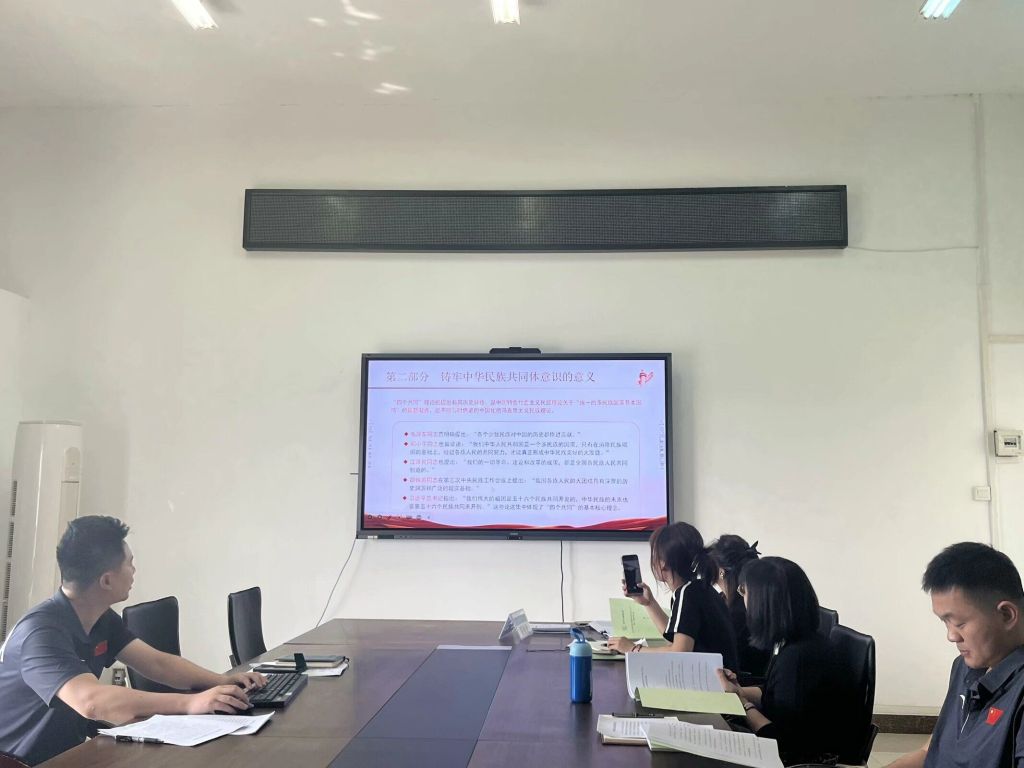 会议第二项,由青年委员唐雪雁领学《深入学习贯彻习近平文化思想 为谱写中国式现代化广西篇章凝心聚力》一文。他说道:广西要推动铸牢中华民族共同体意识示范区的建设,而高校铸牢中华民族共同体意识宣传教育的重要阵地,我们要广泛开展宣传,做好师生民族团结进步教育,利用节庆营造良好民族团结氛围。