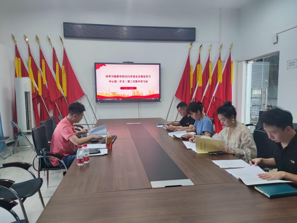 6月14日下午,体育与健康学院于彰善楼4楼召开2023年党总支理论学习中心组(扩大)第二次集中学习会,学院党总支委员、各党支部书记参加了本次会议,学习会由党总支书记郭时骏主持。