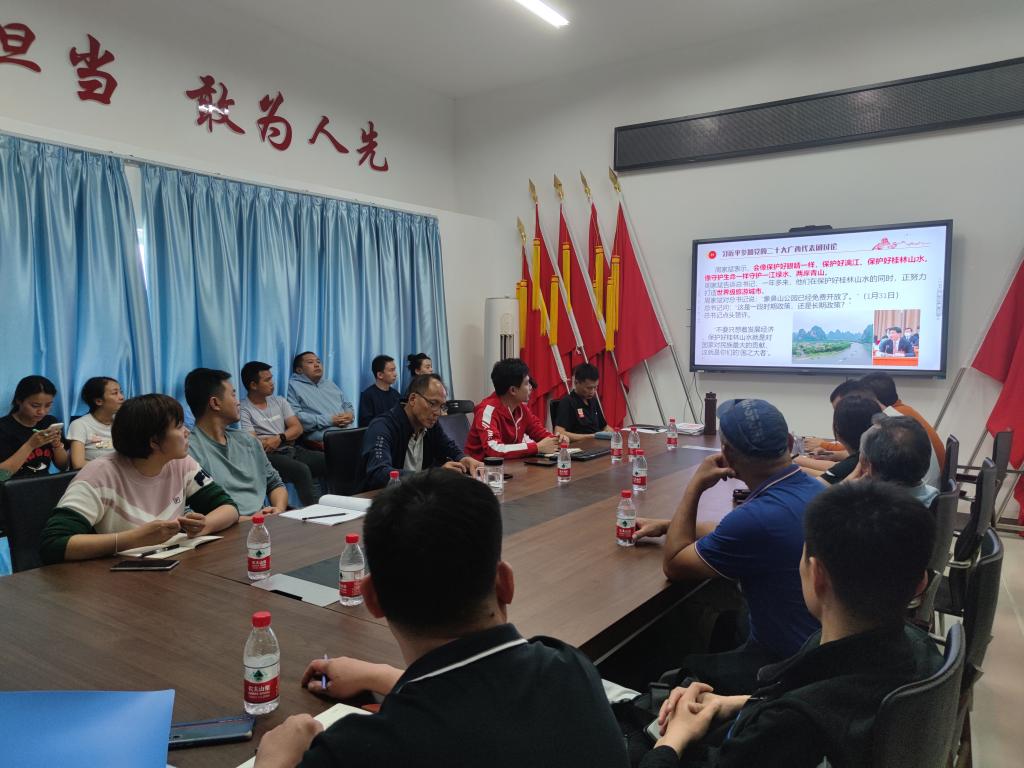 全体教师共同学习习近平总书记在广西代表团的讲话精神,会上传达了习近平总书记在广西代表团讨论中,对十八大以来广西壮族自治区党委和政府工作给予的肯定和嘱托。郭时骏副书记希望学院各位老师牢记总书记讲话精神,坚持自信自立、坚持守正创新,坚持立德树人根本任务,心怀学生,潜心教学。